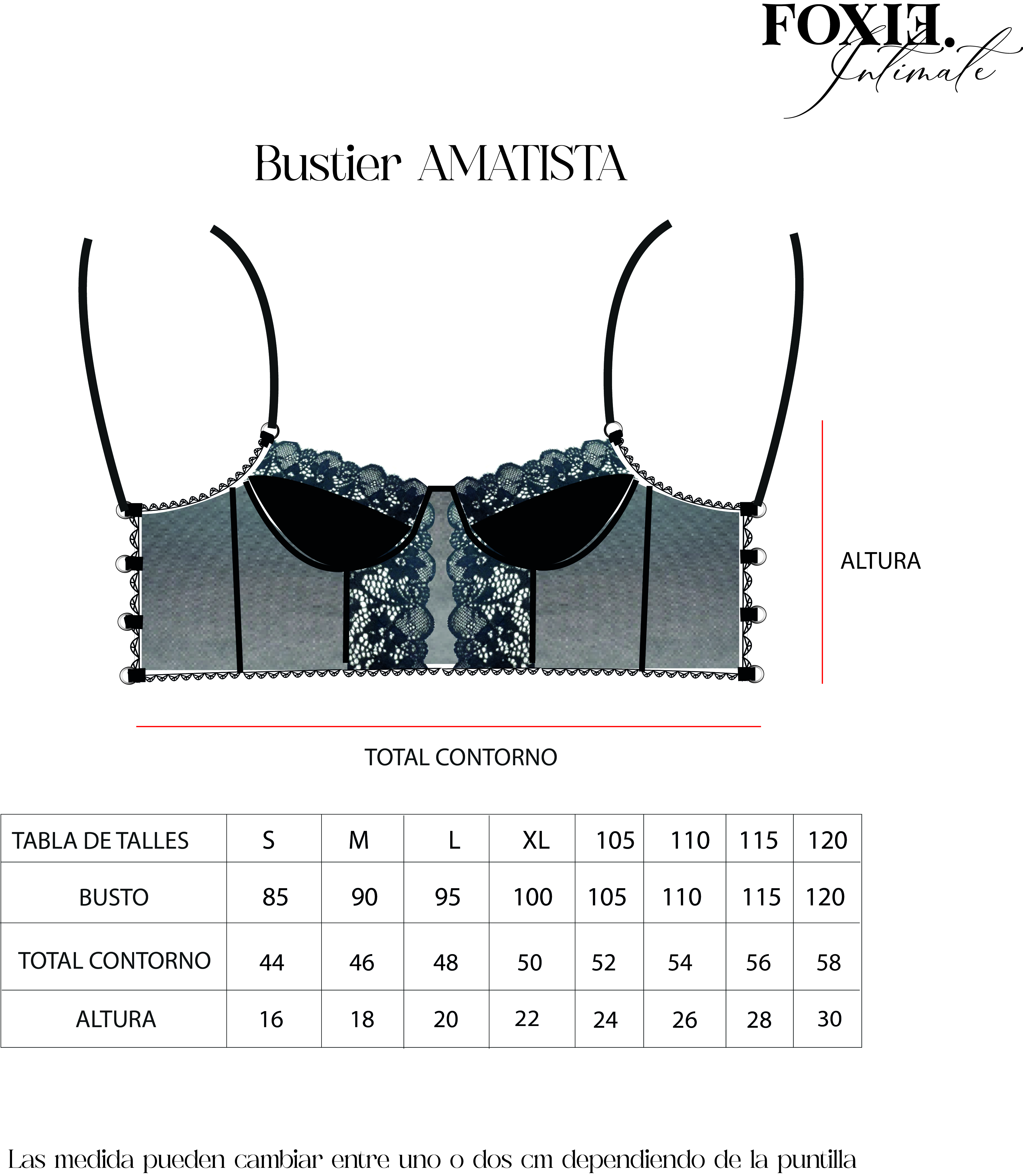 Te mostramos el talle recomendado y las medidas para ese talle.